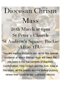 The Deanery Station Masses will take place each Friday Evening during Lent at 7.00pm, at the following locations: 20 February – St. Lawrence’s, Dingwall 27 February – St. Mary’s, Nairn 6 March – St – Aidan’s, Aviemore 13 March – St. Vincent’s, Tain 20 March – St. Martin’s, Ullapool 27 March – St. Mary’s, Inverness …